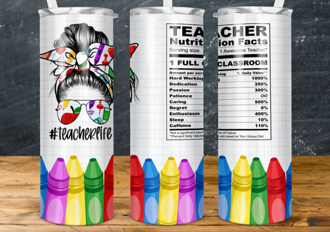 20 oz custom teacher appreciation tumbler, stainless steel , comes with slide opnen and close lid as well as a hard plastic straw, these are perfect for both hot and cold drinks.